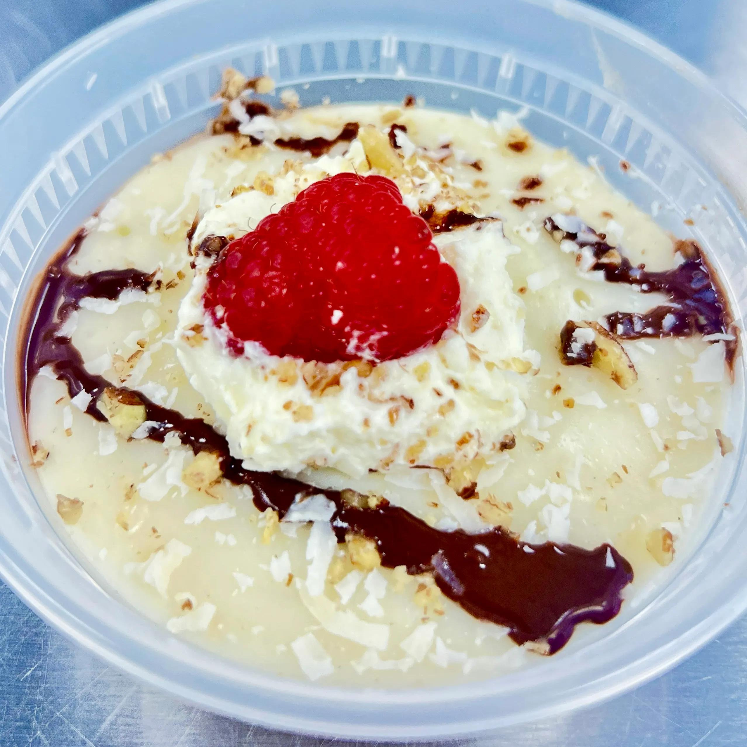 Thick And Creamy Putting With A Twist Made From Ground Rice, Coconut, Walnuts And Special Homemade Flavors.